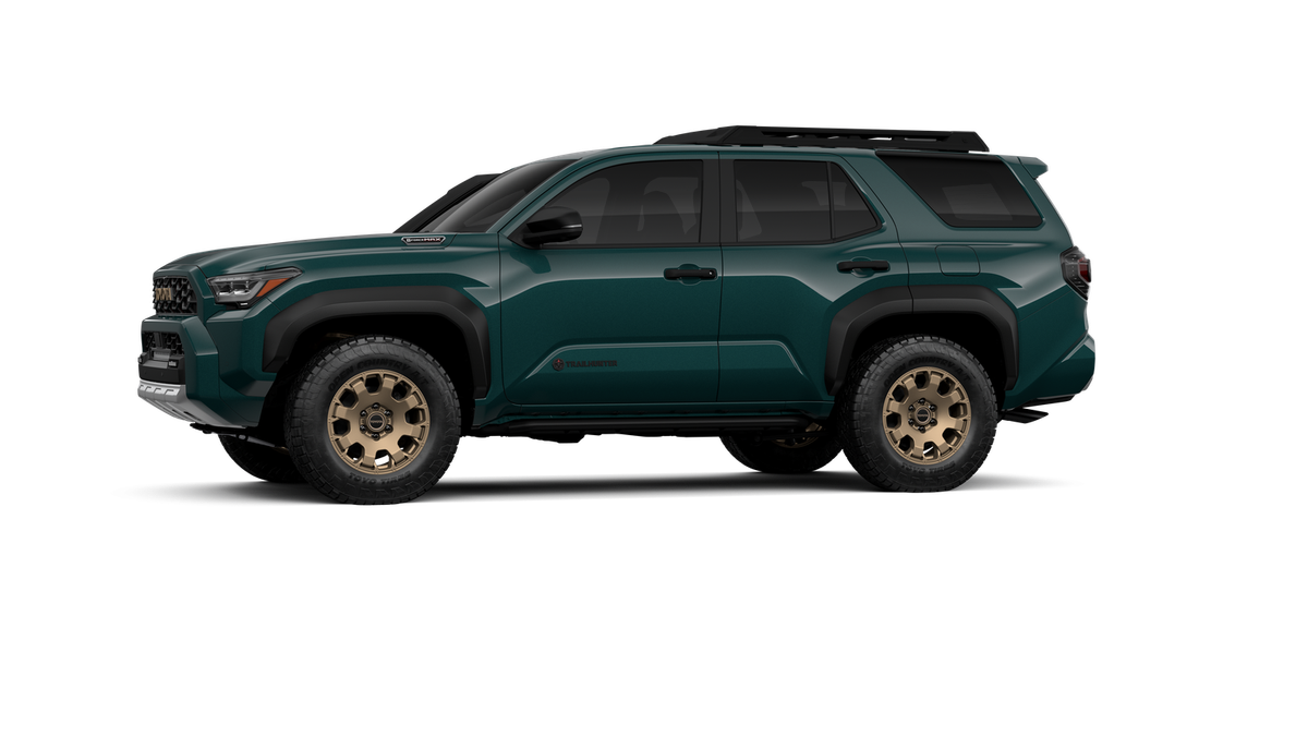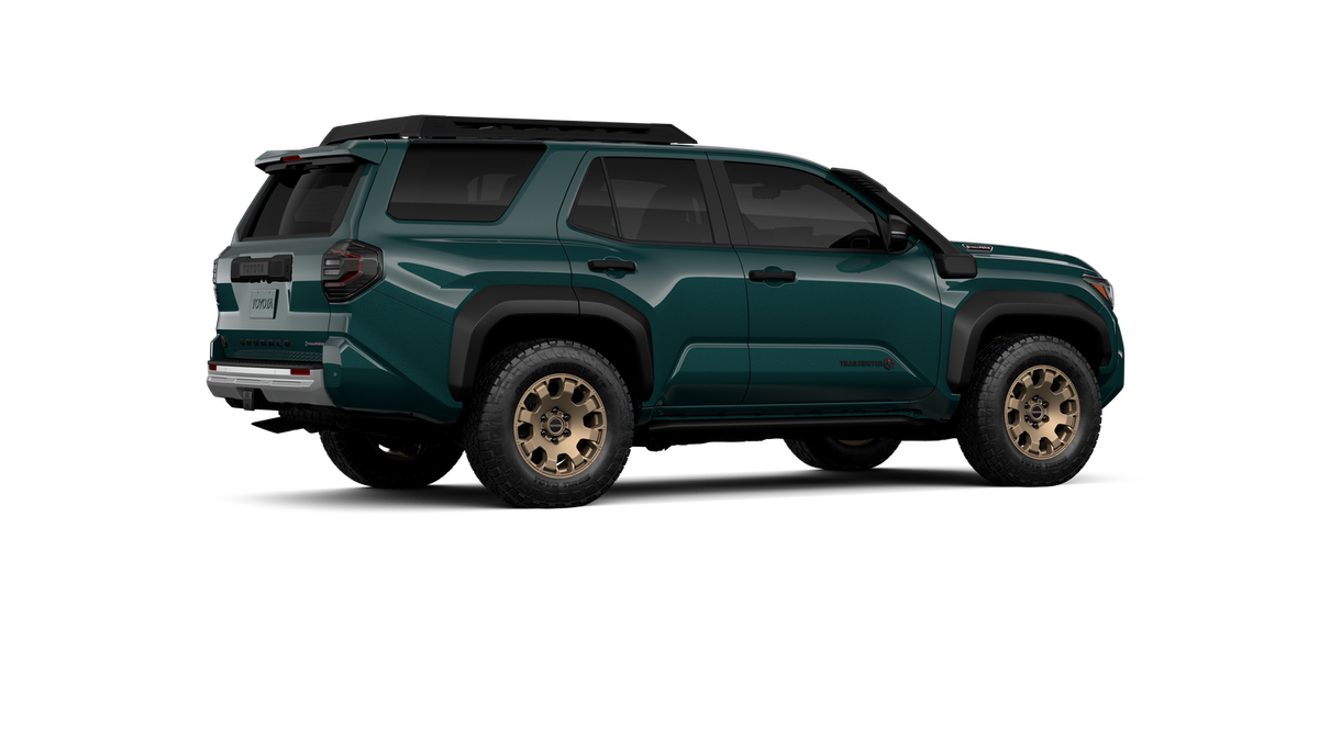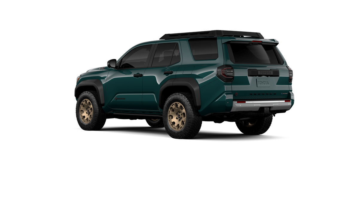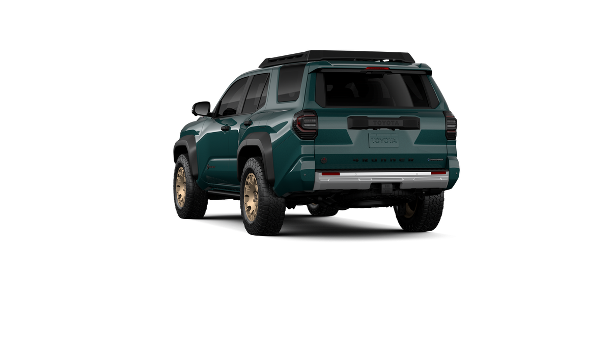 - Black "TOYOTA" heritage grille, door handles and overfenders; color-keyed mirror caps and rear spoiler; black "TRAILHUNTER" and "4RUNNER" badges