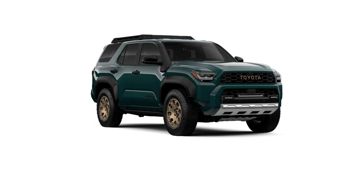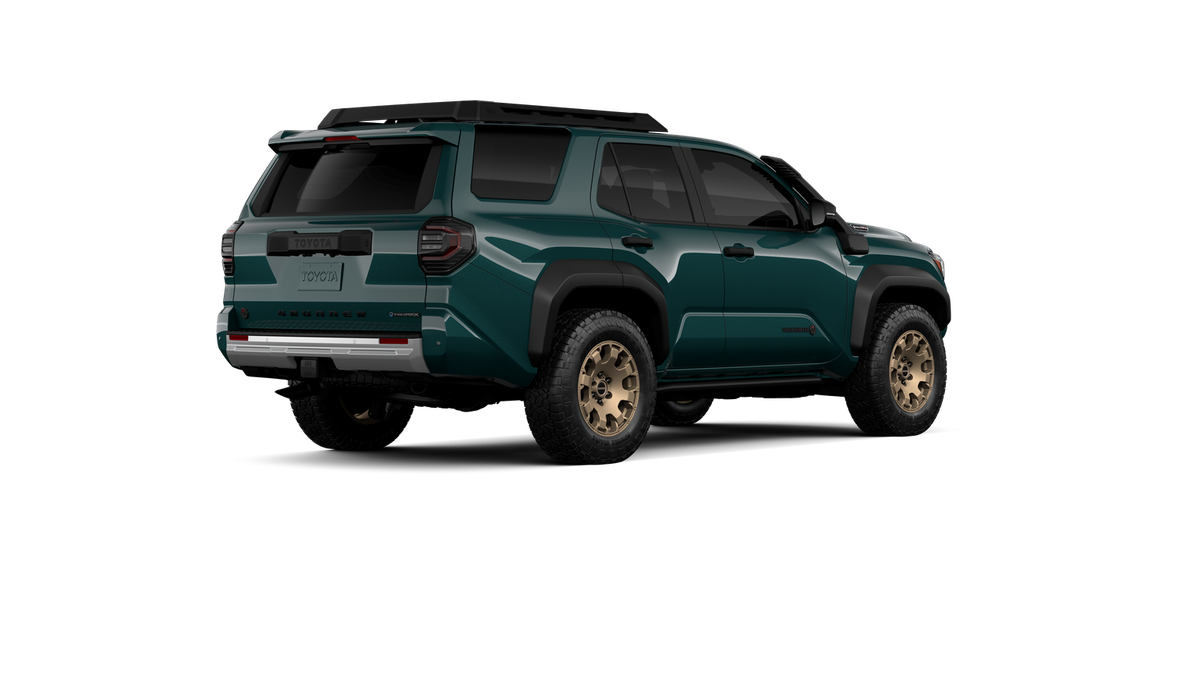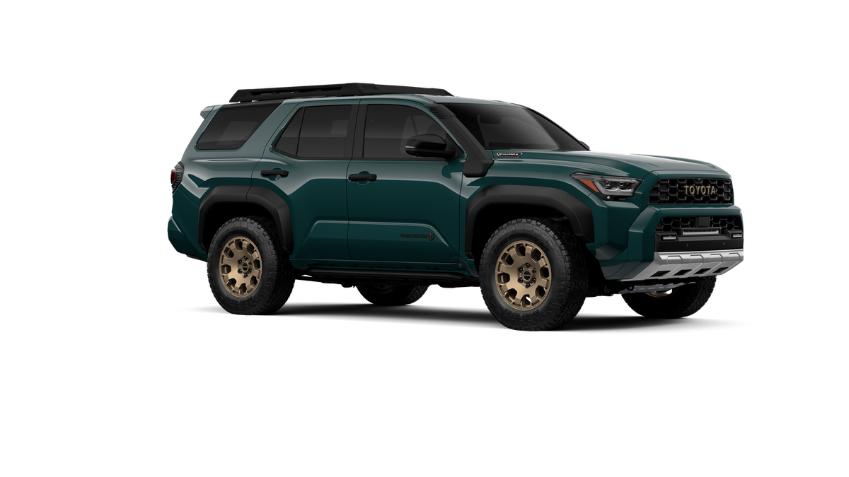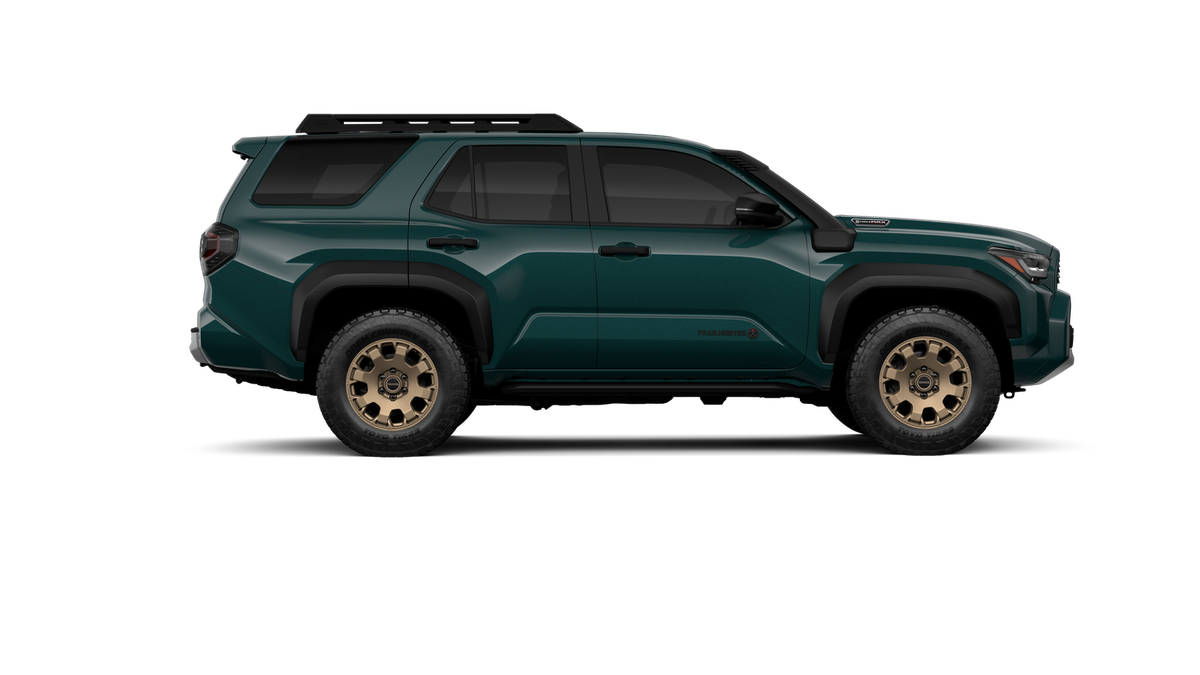 - Black "TOYOTA" heritage grille, door handles and overfenders; color-keyed mirror caps and rear spoiler; black "TRAILHUNTER" and "4RUNNER" badges