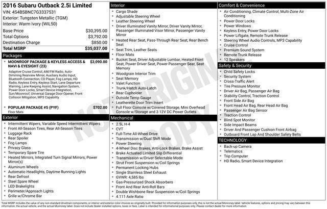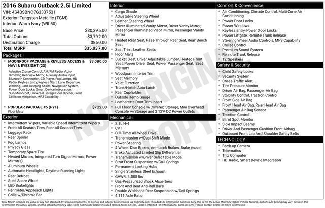 2016 Subaru Outback 2.5i Limited