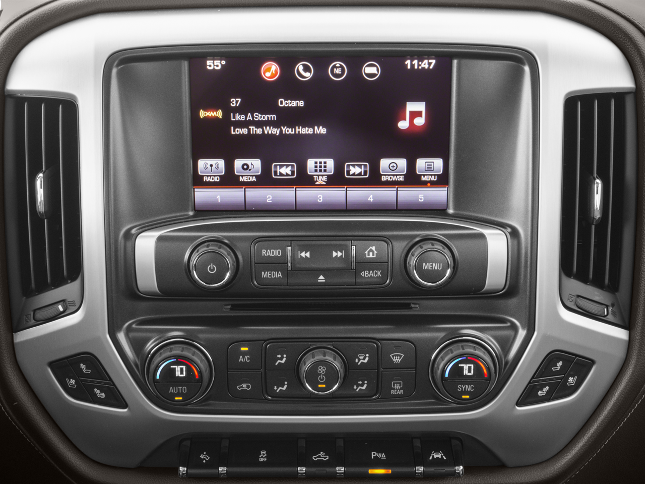 - Audio system, 8" diagonal Color Touch Screen with GMC Infotainment System, AM/FM/SiriusXM, HD Radio with USB ports, auxiliary jack, Bluetooth® streaming audio for music and most phones, Pandora Internet radio and voice-activated technology for radio and phone (Upgradeable to (IO6) 8" Diagonal Color Touch audio system with Navigation and GMC Infotainment System.)