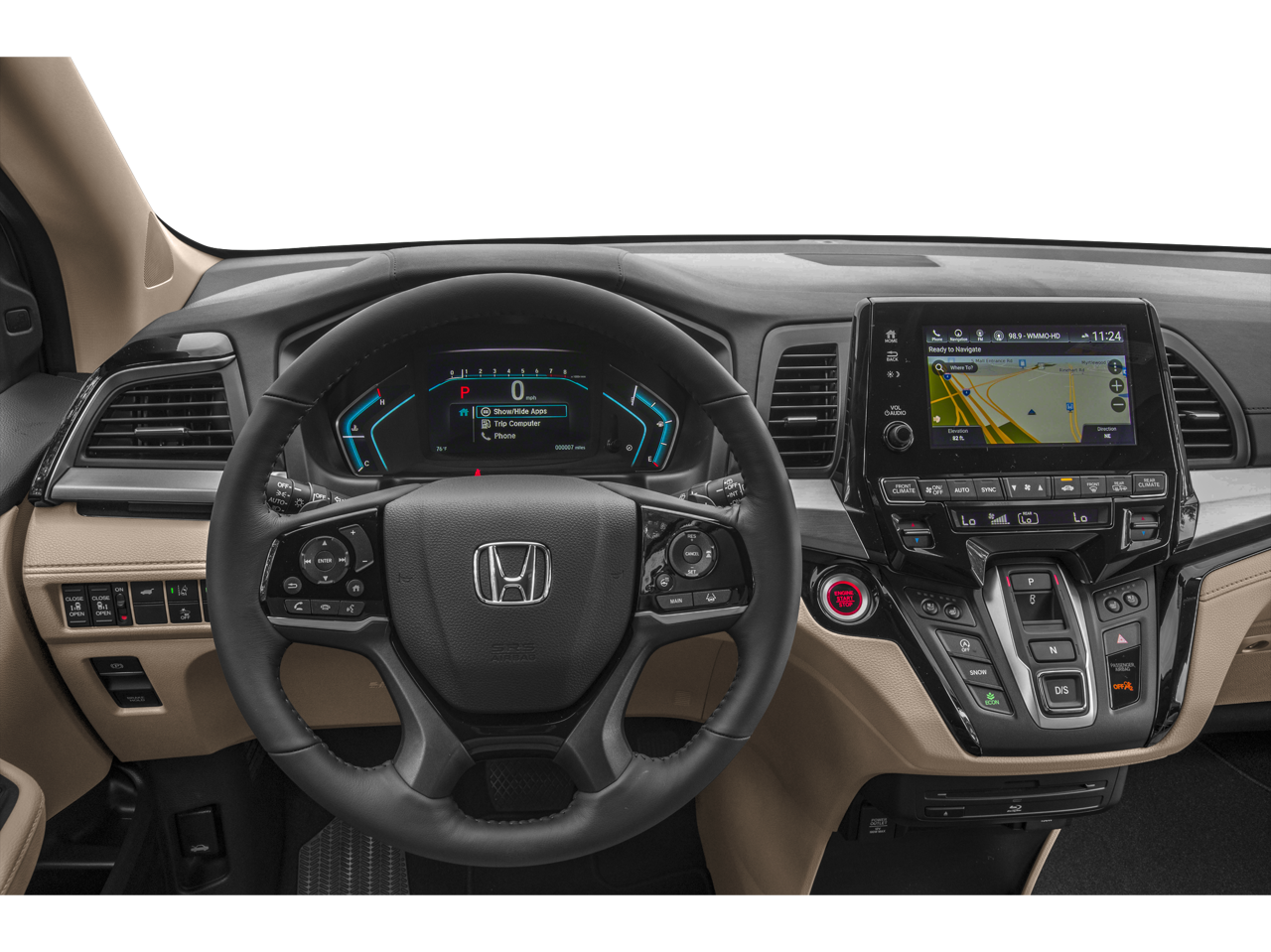 - Radio: 550-Watt AM/FM/HD Premium Audio System -inc: 10 speakers, subwoofer, SiriusXM satellite radio, multi-zone audio, Honda satellite-linked navigation system w/voice recognition and Honda HD digital traffic, Bluetooth® HandsFreeLink, Bluetooth® streaming audio, MP3/auxiliary input jack, radio data system (RDS), SMS text message function, 2.5-amp USB audio interface port in front, 2.5-amp USB charging port in center console, 2 2.5-amp USB charging ports in second row, CabinControl remote compatibility, 8" display audio w/high-resolution (720P) electrostatic touch-screen and customizable feature settings, Apple CarPlay/Android Auto, mobile hotspot capability, wireless phone charger, illuminated steering wheel-mounted audio and navigation controls and body-colored fin-type roof-mounted antenna