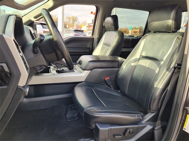Leather, Heated and Cooled Seats, Cruise Control, Steering Wheel Controls, Keyless Entry, Bluetooth®, USB / AUX Ports, Alloy Wheels, Premium Wheels, Parking Sensors, Blind Spot Warning System, Premium Audio, Backup / Rear View Camera, F-150 Lariat, 4D SuperCrew, 5.0L V8, 10-Speed Automatic, 4WD, Black Metallic, Black Leather, 110V/400W Outlet, 18 Machined-Aluminum Wheels, 3.31 Axle Ratio, 4-Wheel Disc Brakes, 7 Speakers, ABS brakes, Adjustable pedals, Air Conditioning, Alloy wheels, AM/FM radio: SiriusXM, Auto High-beam Headlights, Auto-dimming door mirrors, Auto-dimming Rear-View mirror, Automatic temperature control, Brake assist, Bumpers: chrome, Class IV Trailer Hitch Receiver, Compass, Delay-off headlights, Driver door bin, Driver vanity mirror, Dual front impact airbags, Dual front side impact airbags, Electronic Stability Control, Emergency communication system: SYNC 3 911 Assist, Equipment Group 500A Base, Exterior Parking Camera Rear, Front anti-roll bar, Front Center Armrest w/Storage, Front dual zone A/C, Front fog lights, Front License Plate Bracket, Front reading lights, Front wheel independent suspension, Fully automatic headlights, Heated door mirrors, Heated front seats, Illuminated entry, Leather-Trimmed 40/20/40 Front Seat, Low tire pressure warning, Memory seat, Occupant sensing airbag, Outside temperature display, Overhead airbag, Overhead console, Panic alarm, Passenger door bin, Passenger vanity mirror, Pedal memory, Power door mirrors, Power driver seat, Power passenger seat, Power steering, Power windows, Radio data system, Radio: AM/FM Stereo w/6 Speakers, Rear reading lights, Rear seat center armrest, Rear step bumper, Rear window defroster, Remote keyless entry, Security system, SiriusXM Radio, Speed control, Speed-sensing steering, Split folding rear seat, Steering wheel mounted audio controls, SYNC 3, Tachometer, Telescoping steering wheel, Tilt steering wheel, Traction control, Trip computer, Turn signal indicator mirrors, Variably intermittent wipers, Ventilated front seats, Voice-Activated Touchscreen Navigation, Voltmeter.