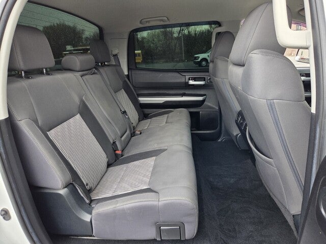 Tundra SR5, 4D CrewMax, i-Force 5.7L V8 DOHC 32V LEV, 6-Speed Automatic Electronic with Overdrive, RWD, Black Cloth, 18 x 8J Styled Steel Wheels, 3-Passenger Front Bench Seat, 4-Wheel Disc Brakes, 9 Speakers, ABS brakes, Air Conditioning, AM/FM radio: SiriusXM, Apple CarPlay/Android Auto, Auto High-beam Headlights, Auto-dimming Rear-View mirror, Brake assist, Compass, Delay-off headlights, Driver door bin, Driver vanity mirror, Dual front impact airbags, Dual front side impact airbags, Electrochromic Rear-View Mirror, Electronic Stability Control, Emergency communication system: Safety Connect with 1-year trial, Exterior Parking Camera Rear, Fabric Seat Trim, Front anti-roll bar, Front Bucket Seats, Front Center Armrest w/Storage, Front fog lights, Front reading lights, Front wheel independent suspension, Fully automatic headlights, Garage door transmitter: HomeLink, Heated door mirrors, HomeLink Universal Transceiver, Illuminated entry, Knee airbag, Leather Seat Trim, Low tire pressure warning, Occupant sensing airbag, Outside temperature display, Overhead airbag, Overhead console, Panic alarm, Passenger door bin, Passenger vanity mirror, Power door mirrors, Power steering, Power windows, Radio data system, Radio: Audio Plus AM/FM/HD Radio, Radio: Premium Audio & Dynamic Navigation, Rear reading lights, Rear seat center armrest, Rear step bumper, Rear window defroster, Remote Connect, Remote keyless entry, Safety Connect, Service Connect, SiriusXM Radio, Speed control, Speed-sensing steering, Split folding rear seat, Steering wheel mounted audio controls, Tachometer, Tilt steering wheel, Traction control, Trip computer, Variably intermittent wipers, Voltmeter.