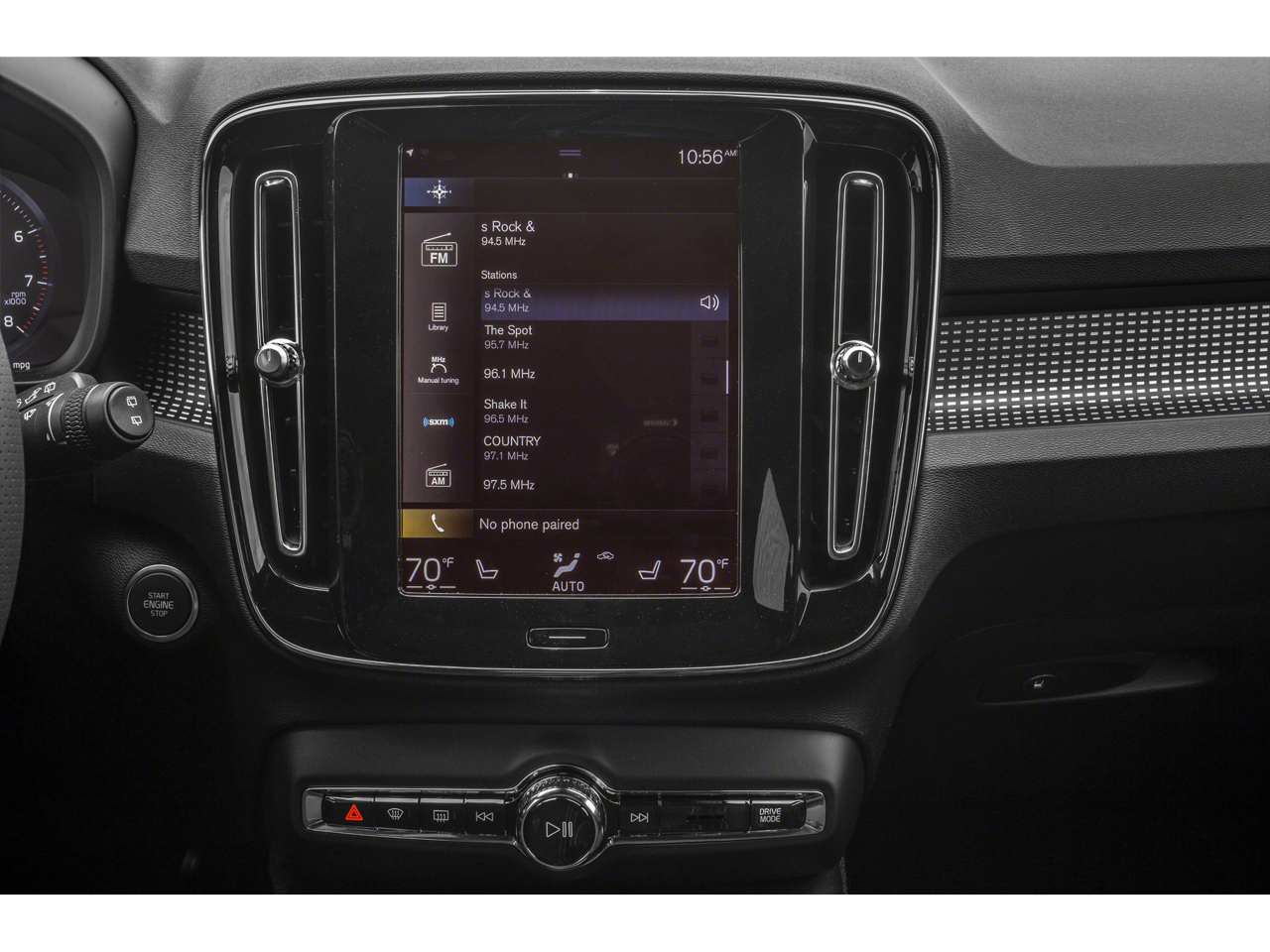 - Radio: AM/FM/HD -inc: Volvo Sensus Connect w/9" touchscreen, WiFi hotspot w/complimentary trial, 250W high performance audio system w/8 speakers including air woofer technology, smartphone integration (Apple CarPlay/Android Auto), voice control, Bluetooth® connectivity w/audio streaming, SiriusXM satellite radio w/3-month complimentary audio trial subscription and 2 front/1 rear USB ports