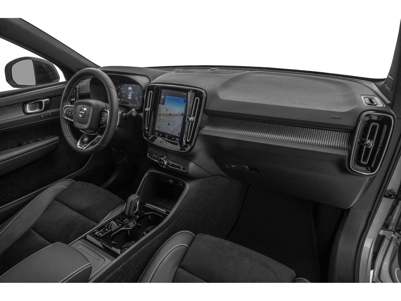 Indulge in the XC40's premium cabin, featuring Nappa leather and Nubuck seating surfaces, a power moonroof, and a 600W Harman/Kardon audio system that will immerse you in your music. The advanced technology suite, including Apple CarPlay, Android Auto, and Volvo's Sensus Navigation, keeps you connected and informed on the go.