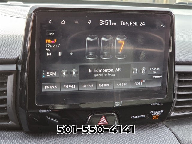 - Radio: AM/FM/HD/SiriusXM Infinity Premium Audio -inc: 8" display navigation 5.0, N specific menus, 8 speakers including subwoofer w/external amp, Bluetooth® hands-free phone system w/voice recognition, Apple CarPlay and Android Auto, dual charging USB ports (1 data and 2 power), speed-sensitive automatic volume control and Blue Link connected car system