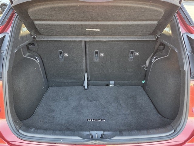 *** CLEAN CARFAX ***, Kicks SR, 4D Sport Utility, 1.6L 4-Cylinder DOHC 16V, CVT with Xtronic, FWD, Scarlet Ember Tintcoat, Charcoal w/Cloth Seat Trim, 17 Alloy Wheels, 3.93 Axle Ratio, 4-Wheel Disc Brakes, 6 Speakers, ABS brakes, Air Conditioning, Alloy wheels, AM/FM radio: SiriusXM, Apple CarPlay/Android Auto, Auto High-beam Headlights, Automatic temperature control, Blind Spot Warning, Bose Personal Plus Audio System, Brake assist, Bumpers: body-color, Carpeted Floor Mats w/Cargo Mat, Cloth Seat Trim, Delay-off headlights, Driver door bin, Driver vanity mirror, Dual front impact airbags, Dual front side impact airbags, Electronic Stability Control, Exterior Parking Camera Rear, Front anti-roll bar, Front Bucket Seats, Front Center Armrest, Front fog lights, Front reading lights, Front wheel independent suspension, Fully automatic headlights, Heated door mirrors, Heated Front Seats, Heated Steering Wheel, Illuminated entry, Knee airbag, Low tire pressure warning, NissanConnect Services, Occupant sensing airbag, Outside temperature display, Overhead airbag, Panic alarm, Passenger door bin, Passenger vanity mirror, Power door mirrors, Power steering, Power windows, Prima-Tex Appointed Seat Trim, Radio data system, Radio: AM/FM Audio System, Rear Parking Sensors, Rear reading lights, Rear Roof Spoiler Credit, Rear side impact airbag, Rear window defroster, Rear window wiper, Remote keyless entry, Security System, Speed control, Splash Guards Grain (4 Piece), Split folding rear seat, Sport steering wheel, SR Premium Package, Steering wheel mounted audio controls, Tachometer, Technology Package, Telescoping steering wheel, Tilt steering wheel, Tonneau Cover, Traction control, Trip computer, Turn signal indicator mirrors, Variably intermittent wipers.