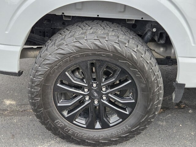 F-150 Lariat, 4D SuperCrew, 3.5L PowerBoost Full-Hybrid V6, 10-Speed Automatic, 4WD, Avalanche Gray, Black Leather, 4-Wheel Disc Brakes, 8 Speakers, ABS brakes, Adjustable pedals, Air Conditioning, Alloy wheels, AM/FM radio: SiriusXM with 360L, Auto High-beam Headlights, Auto-dimming door mirrors, Auto-dimming Rear-View mirror, Automatic temperature control, Brake assist, Bumpers: chrome, Chrome wheels, Compass, Delay-off headlights, Driver door bin, Driver vanity mirror, Dual front impact airbags, Dual front side impact airbags, Electronic Stability Control, Emergency communication system: SYNC 4 911 Assist, Equipment Group 501A Standard, Front anti-roll bar, Front Bucket Seats, Front Center Armrest, Front dual zone A/C, Front fog lights, Front reading lights, Front wheel independent suspension, Fully automatic headlights, Garage door transmitter, Heated door mirrors, Heated front seats, Heated steering wheel, Illuminated entry, Leather-Trimmed Bucket Seats, LED Sideview Mirror Spotlights, Low tire pressure warning, Memory seat, Navigation system: Connected Navigation, Occupant sensing airbag, Outside temperature display, Overhead airbag, Overhead console, Panic alarm, Passenger door bin, Passenger vanity mirror, Pedal memory, Power door mirrors, Power driver seat, Power passenger seat, Power steering, Power windows, Radio data system, Radio: B&O Sound System by Bang & Olufsen, Rain sensing wipers, Rear reading lights, Rear seat center armrest, Rear step bumper, Rear window defroster, Remote keyless entry, Security system, Speed control, Split folding rear seat, Steering wheel mounted audio controls, SYNC 4 w/Enhanced Voice Recognition, Tachometer, Telescoping steering wheel, Tilt steering wheel, Tough Bed Spray-In Bedliner, Traction control, Trip computer, Turn signal indicator mirrors, Variably intermittent wipers, Ventilated front seats, Voltmeter, Wheels: 20 Chrome-Like PVD.
