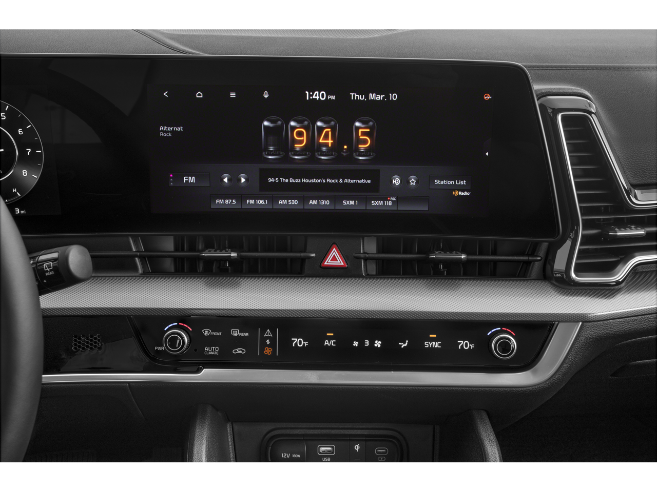 - Radio: AM/FM/HD Audio System -inc: 12.3" touchscreen w/navigation, 400 W w/HALOsonic harman/kardon sound system, 8 speakers, Apple Carplay and Android Auto, Kia Connect, voice recognition, WiFi, map OTA, satellite radio, steering wheel mounted audio controls and Bluetooth® phone and streaming audio