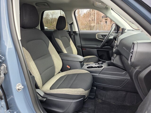 Bronco Sport Big Bend, 4D Sport Utility, 1.5L EcoBoost, 8-Speed Automatic, 4WD, Azure Gray Metallic Tri-Coat, Medium Lt Smoked Truffle Cloth, 4-Wheel Disc Brakes, 6 Speakers, ABS brakes, Air Conditioning, Alloy wheels, AM/FM radio: SiriusXM, AM/FM Stereo, Auto High-beam Headlights, Automatic temperature control, Brake assist, Cloth w/Easy-to-Clean Front Bucket Seats, Compass, Delay-off headlights, Driver door bin, Driver vanity mirror, Dual front impact airbags, Dual front side impact airbags, Electronic Stability Control, Emergency communication system: SYNC 4 911 Assist, Equipment Group 200A, Four wheel independent suspension, Front anti-roll bar, Front Bucket Seats, Front Center Armrest, Front reading lights, Fully automatic headlights, Heated door mirrors, Illuminated entry, Knee airbag, Low tire pressure warning, Occupant sensing airbag, Outside temperature display, Overhead airbag, Overhead console, Panic alarm, Passenger door bin, Passenger vanity mirror, Power door mirrors, Power steering, Power windows, Radio data system, Rear anti-roll bar, Rear Parking Sensors, Rear reading lights, Rear seat center armrest, Rear window defroster, Rear window wiper, Remote keyless entry, Security system, SiriusXM, Speed control, Speed-sensing steering, Speed-Sensitive Wipers, Split folding rear seat, Steering wheel mounted audio controls, SYNC 4 w/Enhanced Voice Recognition, Tachometer, Telescoping steering wheel, Tilt steering wheel, Traction control, Trip computer, Variably intermittent wipers, Wheels: 17 Carbonized Gray-Painted Aluminum.